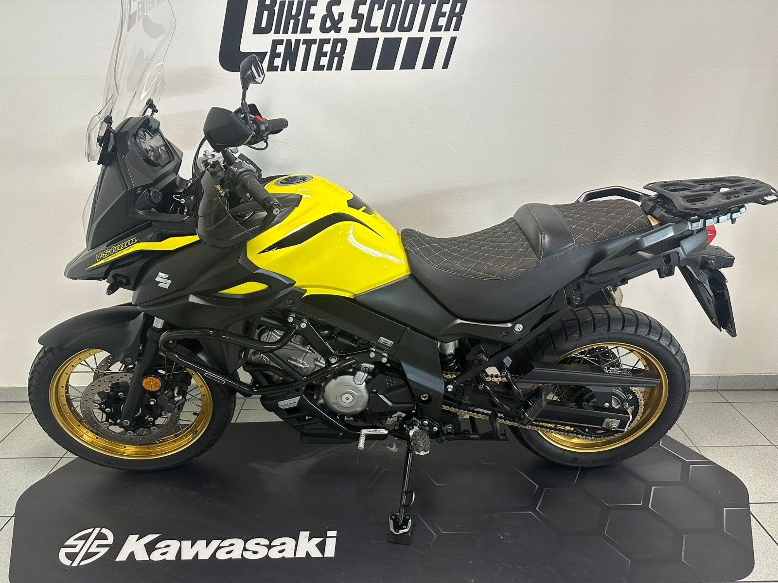 Die kleine V-Strom 650 ist nicht nur optisch durch den ausgeprägten Entenschnabel, die gestapelten Scheinwerfer und die umfangreichen Instrumente nahe an der großen V-Strom 1000 dran. Die Ausstattung entspricht nämlich so gar nicht dem, was man unter" billigem Einstieg" versteht: Traktionskontrolle, quirliges Euro4-Triebwerk, harmonisches Fahrverhalten und noch zusätzliche Techno-Gadgets wie Low RPM Assist oder Suzuki Easy Start System. Der Preis hält sich zur Freude der Kundschaft in Grenzen.